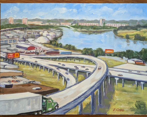 Title: Tow Boat Fairfax Passing Under the Hwy 291 Bridges